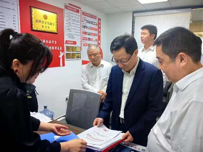 胡立安一行首先來到深圳委員工作室實(shí)地察看,與委員工作室成員詳細(xì)交流,詢問委員工作室的運(yùn)行情況,對(duì)委員工作室助力家鄉(xiāng)招商引資、宣傳推介家鄉(xiāng)等工作表示充分肯定。