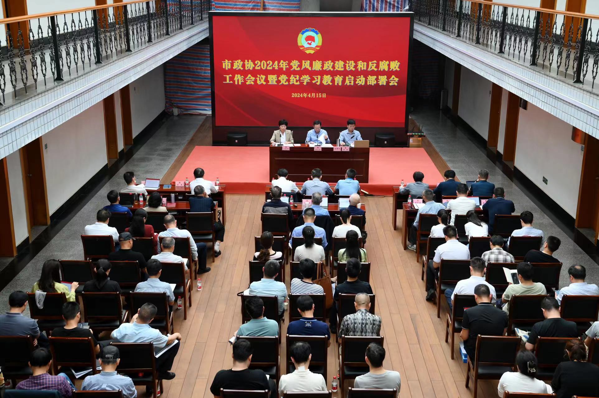 4月15日,市政協(xié)召開黨紀(jì)學(xué)習(xí)教育啟動部署會議,市政協(xié)黨組書記、主席胡立安出席并講話。