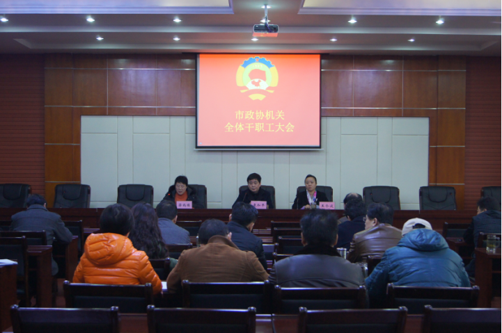 (本網(wǎng)訊)3 月4日,市政協(xié)機(jī)關(guān)召開全體干職工大會。會議由市政協(xié)黨組成員、秘書長、機(jī)關(guān)黨委書記袁和平主持。在家的市政協(xié)副主席徐德華參加了會議。會議邀請了市紀(jì)委副書記、監(jiān)察局局長王令波、監(jiān)察局副局長葉立飛參加。
