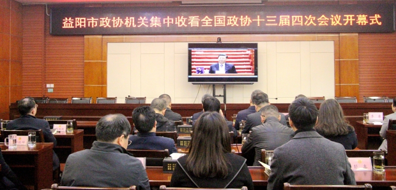3月4日下午,全國政協(xié)十三屆四次會議在北京人民大會堂開幕。市政協(xié)機關干部職工集中收看開幕直播盛況。市政協(xié)副主席胡捷、黃仲書、高德文、劉凌云,秘書長李賽在市政協(xié)機關參加收看。