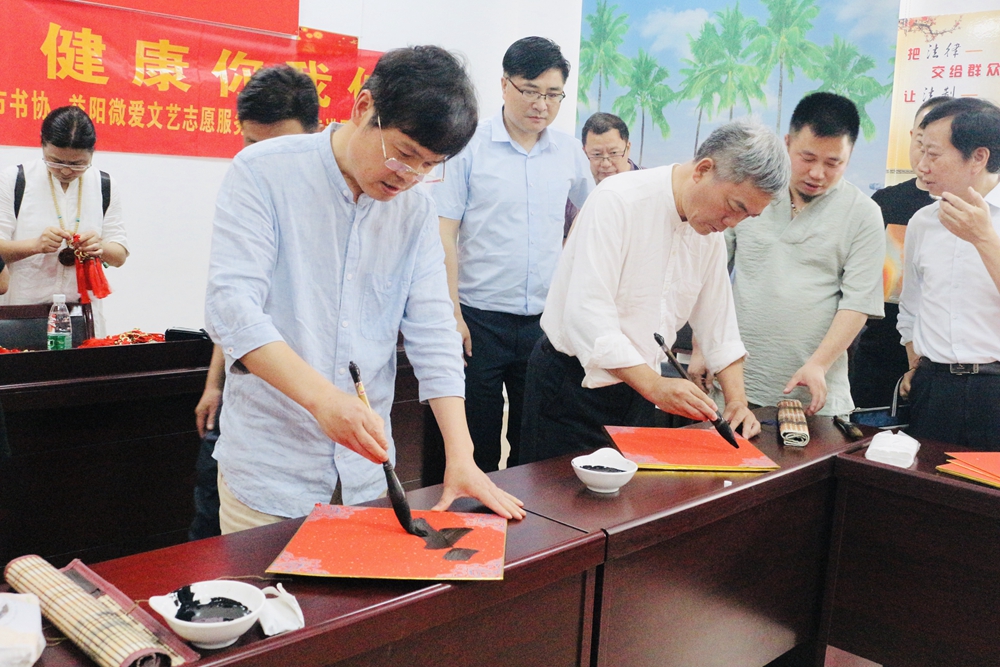 弘揚(yáng)傳統(tǒng)文化,傳承書法藝術(shù)。5月28日,在第7個(gè)中國文藝志愿者服務(wù)日期間,由市政協(xié)學(xué)聯(lián)委主辦,市書協(xié)攜手市微愛公益服務(wù)中心組織文藝志愿者走進(jìn)赫山區(qū)羅溪社區(qū),開展 “文藝進(jìn)萬家·健康你我他”文藝志愿服務(wù)主題活動(dòng)。
