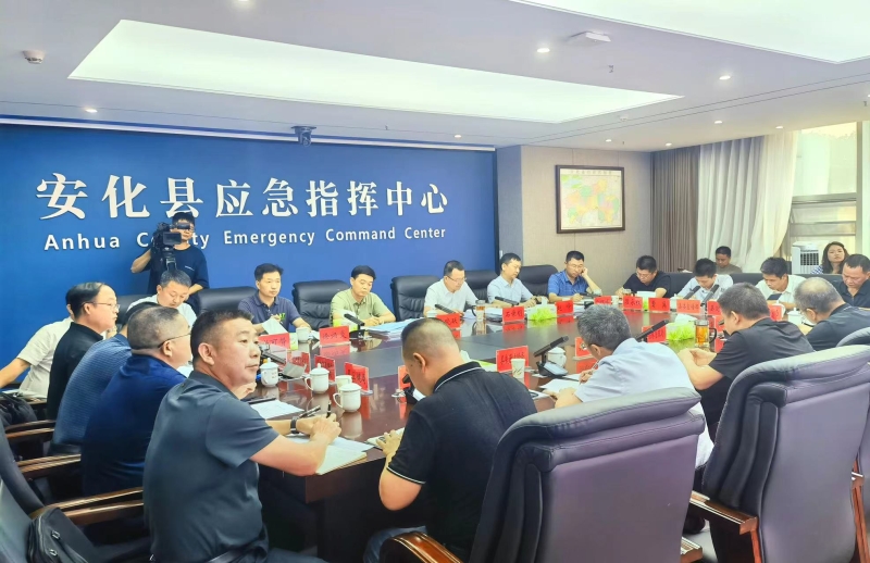 7月1日安化全縣啟動防汛Ⅱ級應(yīng)急響應(yīng),部分鄉(xiāng)鎮(zhèn)啟動I級。接到市防指的通知后,李曉躍第一時間趕往安化。在城南區(qū)了解當?shù)厥転那闆r后,立馬前往安化縣應(yīng)急指揮中心,與安化縣防指主要負責人會商。