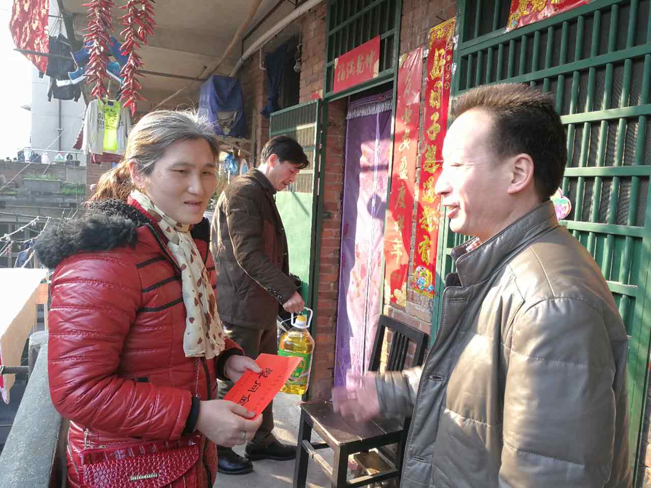 高德文一行先后來到特困戶王紅、莫建軍、盛創(chuàng)文家中,與他們親切拉家常,詢問他們的生活、身體狀況。當(dāng)?shù)弥麄兪且虿≈吕У那闆r時,高德文鼓勵他們樹立生活信心,戰(zhàn)勝疾病,早日康復(fù),隨即為他們送上了慰問金、米和油等生活物資,并為他們送上新年祝福。