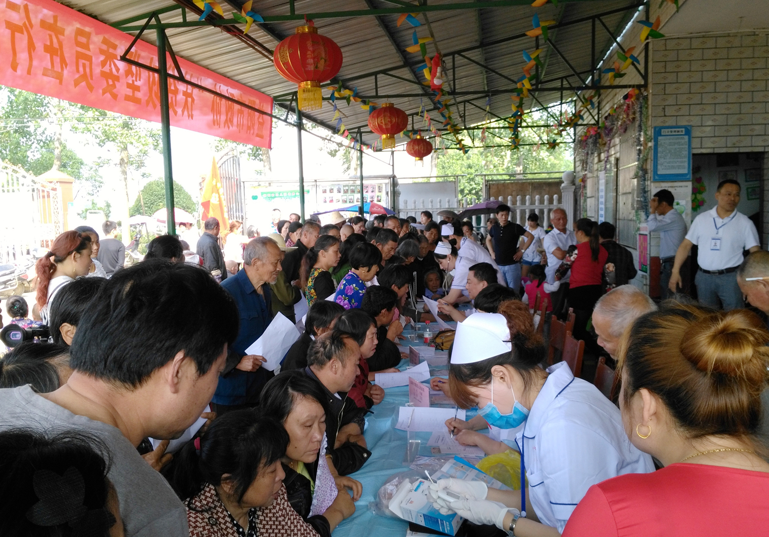 6月4日,市政協(xié)聯(lián)合市第四人民醫(yī)院在赫山區(qū)蘭溪鎮(zhèn)龍榮村開(kāi)展義診活動(dòng)。龍榮村是省級(jí)重點(diǎn)扶貧村,也是市政協(xié)主席黃加忠同志的精準(zhǔn)扶貧點(diǎn)。扶貧工作隊(duì)在走訪時(shí)發(fā)現(xiàn),該村村民健康意識(shí)較為薄弱,看病難的問(wèn)題較為突出,于是決定開(kāi)展一次義診活動(dòng)。