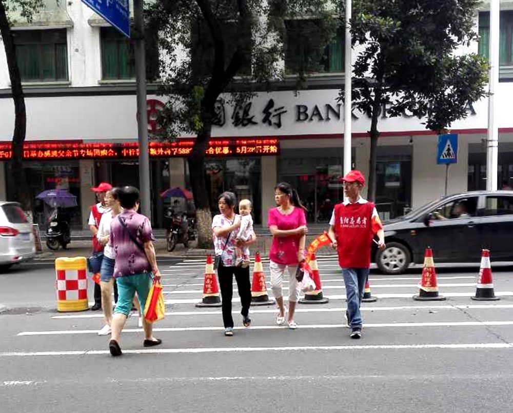 市政協(xié)交通文明勸導地點為桃花侖路與陸賈山路的交匯處,作為城市主干道之一,這里平時的車流量和人流量都很密集。文明勸導員們頭戴小紅帽,身穿志愿服,手配紅袖章,手握小紅旗,標識很明顯。大家或頂著烈日,汗淋夾背,揮著小紅旗,或冒雨勸導,“現(xiàn)在車流量很大,請稍等片刻”、“這邊不能調(diào)頭,請往前行100米,那邊可調(diào)頭。”“小朋友,不要急,大家手牽手一起過馬路”。勸導聲不斷,文明語言飛揚,市政協(xié)交通文明勸導員為城市出行安全保駕護航,為城市文明創(chuàng)建倡議篤行。 市民們紛紛感受到文明關懷的力量,漸漸轉(zhuǎn)化為自覺的文明行動。文明創(chuàng)建,讓城市一點點變化,使群眾幸福指數(shù)不斷攀升,也使市民們深切感受到“文明城市人人共創(chuàng),城市文明人人共享”的無限魅力。市政協(xié)的文明勸導員們紛紛表示,十分樂意參與文明勸導志愿服務,愿用自己的一份力量,為城市增添一份文明!